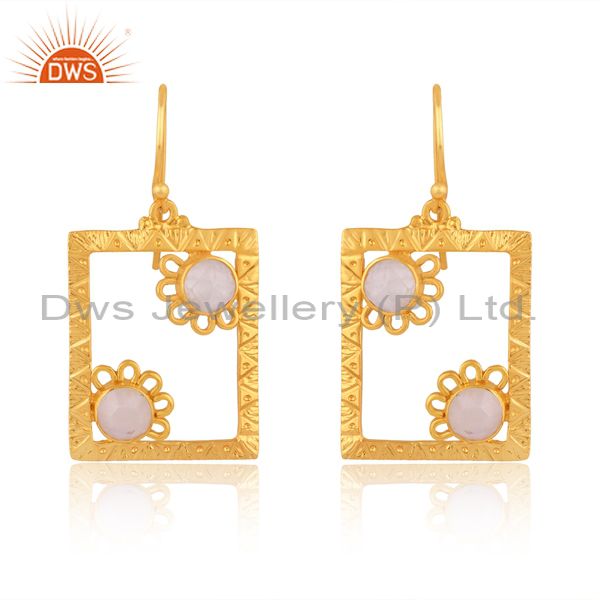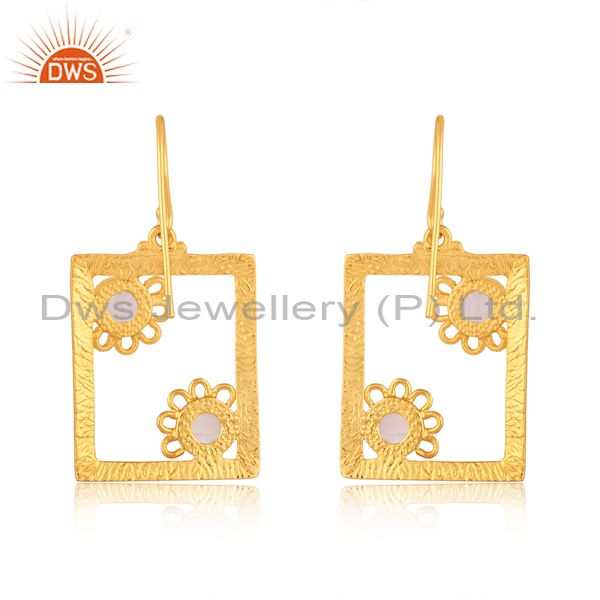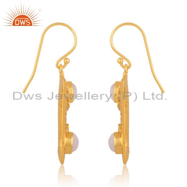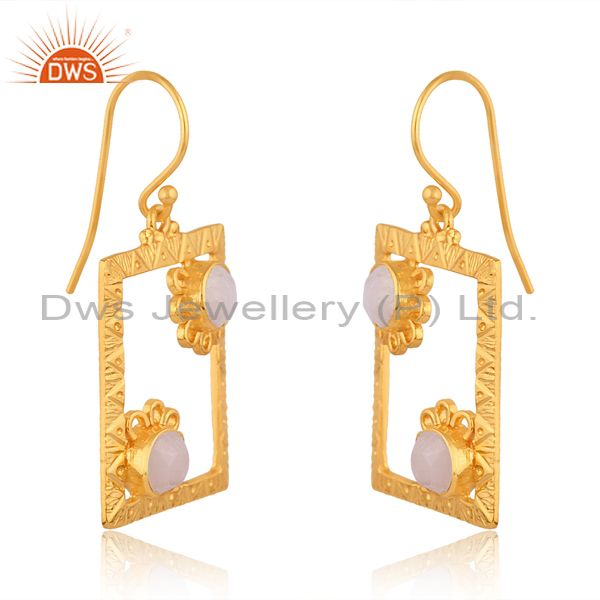 Round Cut Rainbow Moon Stone Set 18K Gold Designer Earrings