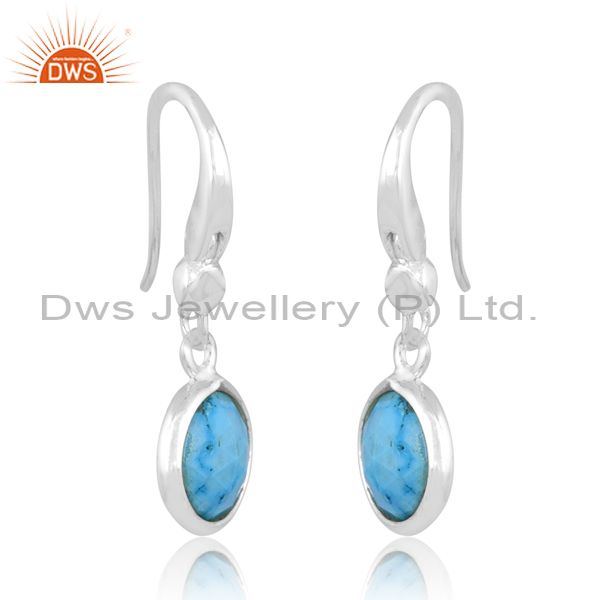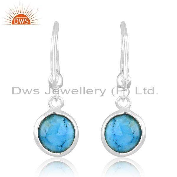 Round Cut Turquoise Set Fine 925 Sterling Silver Earrings