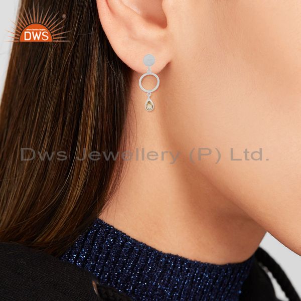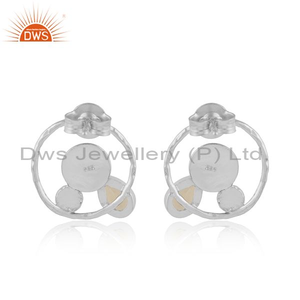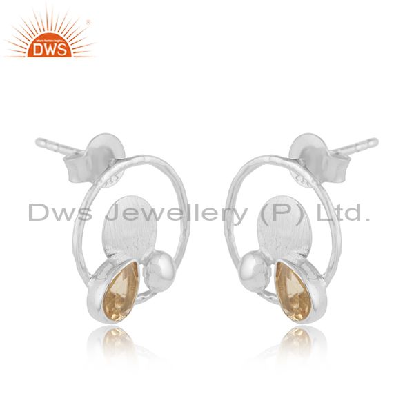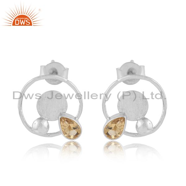 Round Design 925 Sterling Fine Silver Citrine Gemstone Earrings