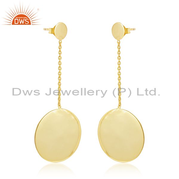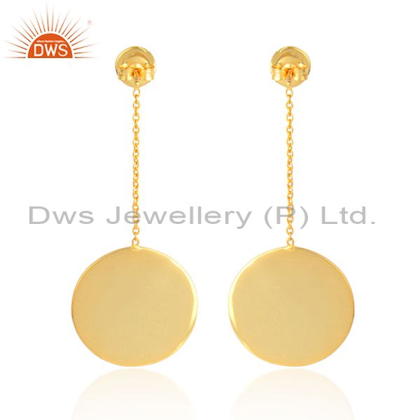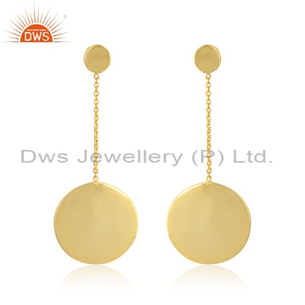 Round Disc Design Gold Plated Plain Silver Chain Drop Earrings
