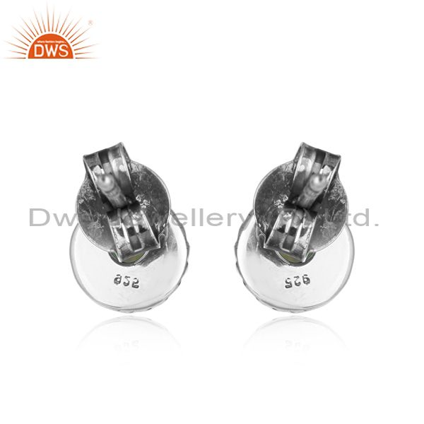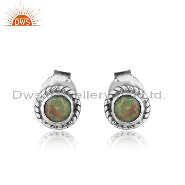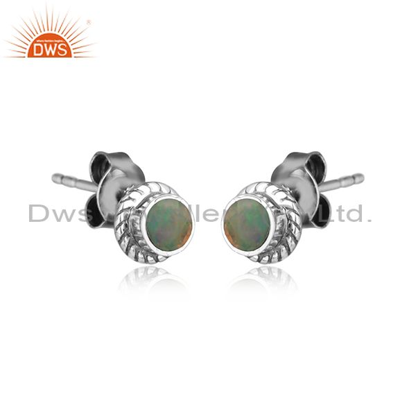 Round Ethiopian Opal Gemstone Oxidized 925 Silver Tiny Stud Earrings