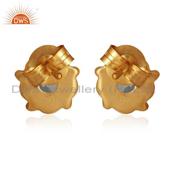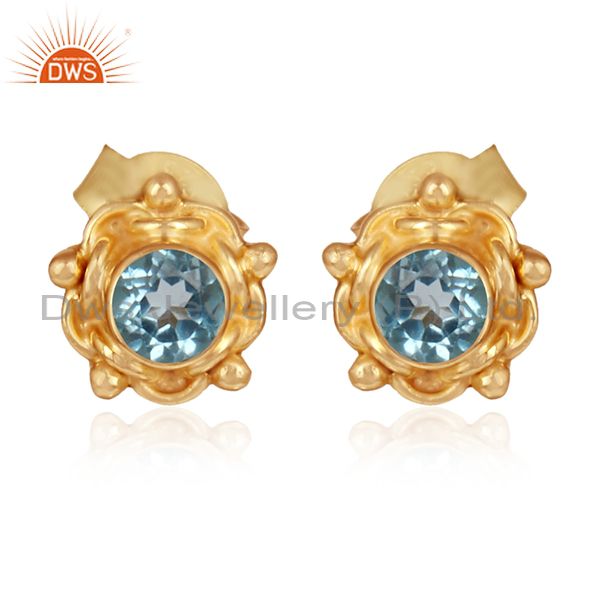 Round Gold Plated Silver Blue Topaz Gemstone Stud Earring Jewelry