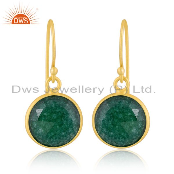 Round Green Quartz Set Gold On 925 Sterling Silver Earrings