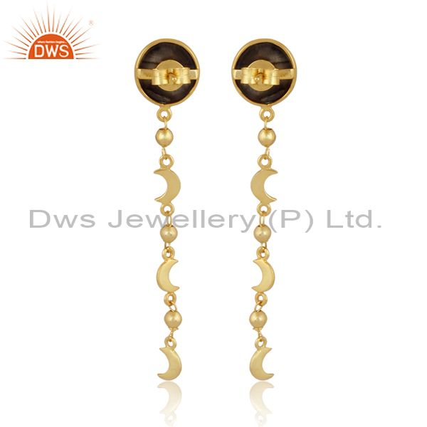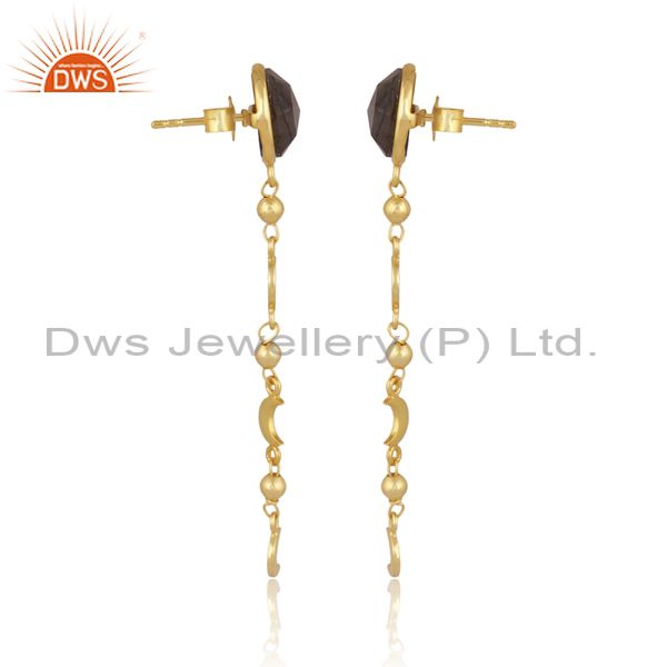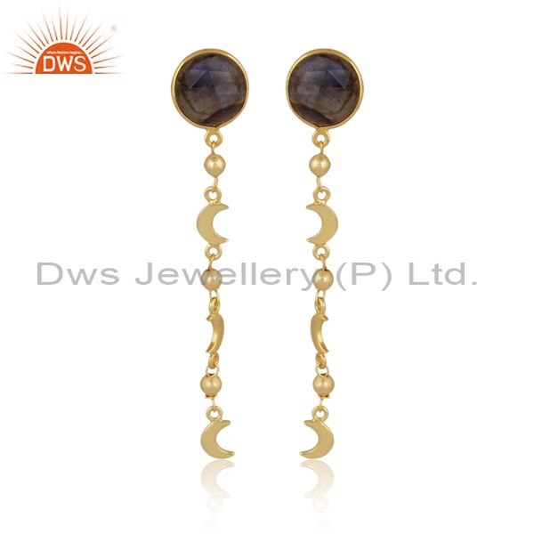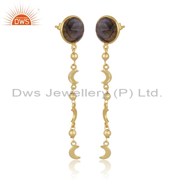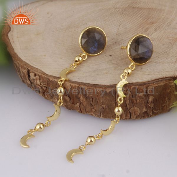 Round Labradorite Gold On 925 Sterling Silver Long Earrings