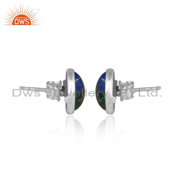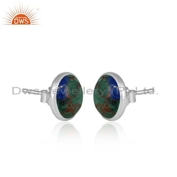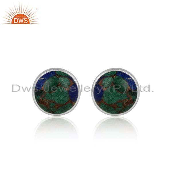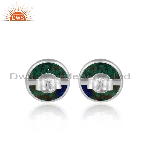 Round Mojave Copper Azurite Malachite Fine Silver Earrings