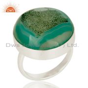 Round Natural Green Druzy Agate Sterling Silver Bezel-Set Earrings For Women