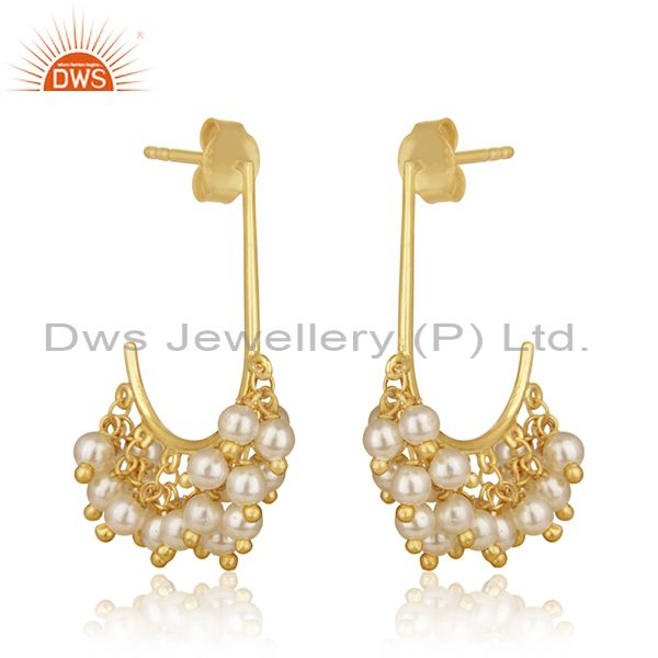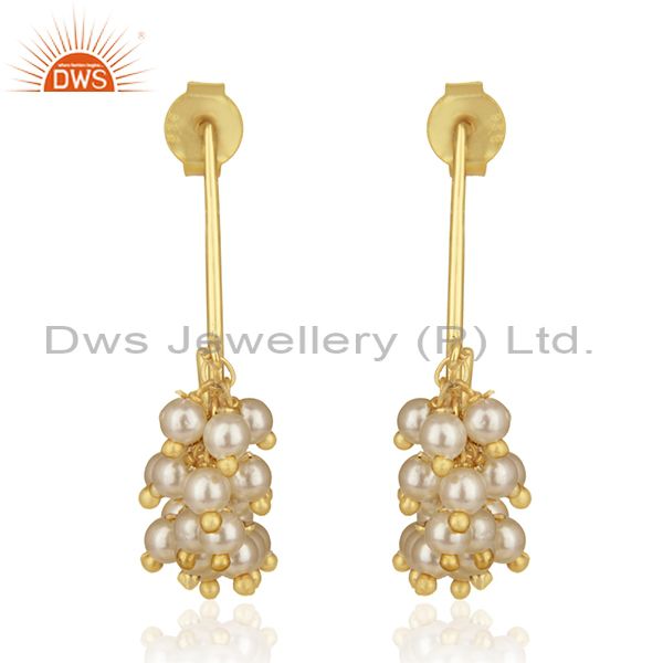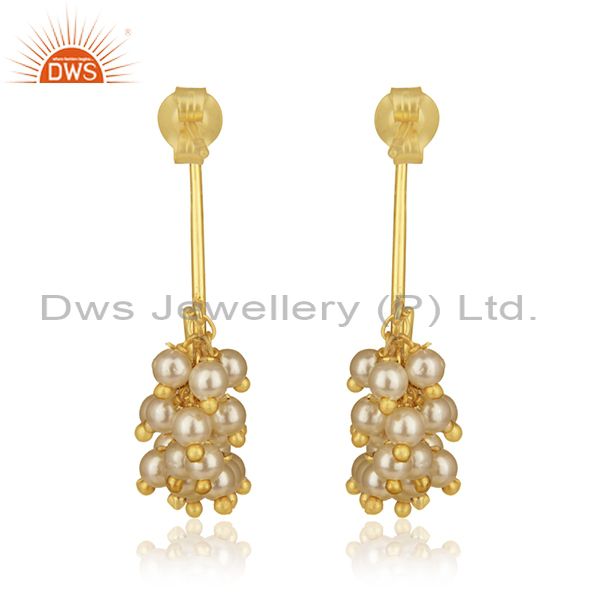 Round Pearl Beads Set 18K Gold On 925 Silver Ethnic Earrings