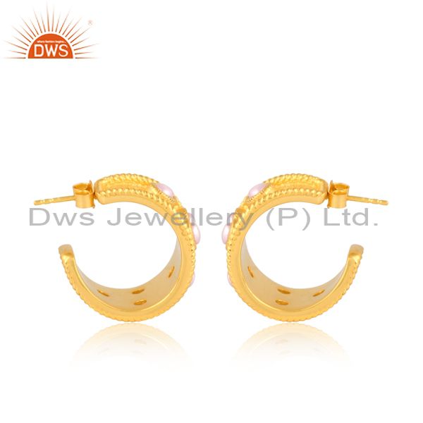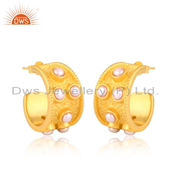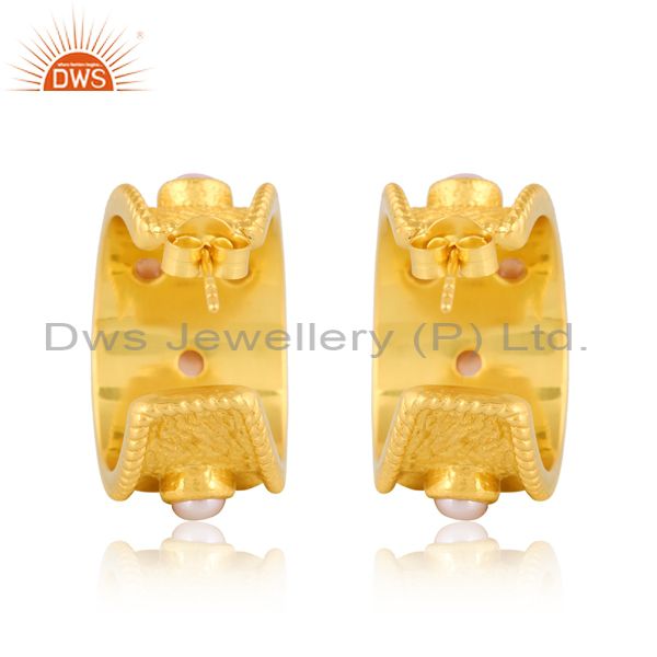 Round Pearl Set Gold On 925 Silver Huggies Style Earrings