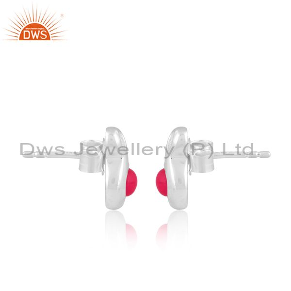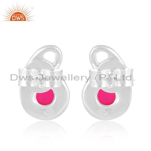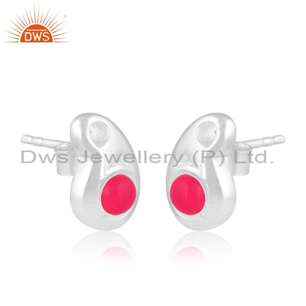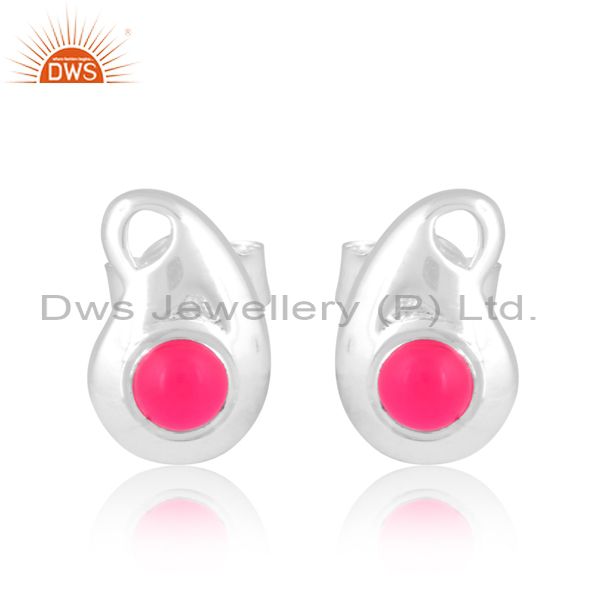 Round Pink Chalcedony Set Fine 925 Silver Abstract Earrings
