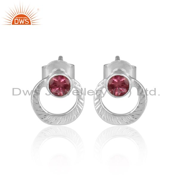 Round Pink Tourmaline Set Fine 925 Silver Designer Earrings