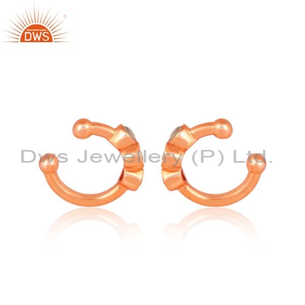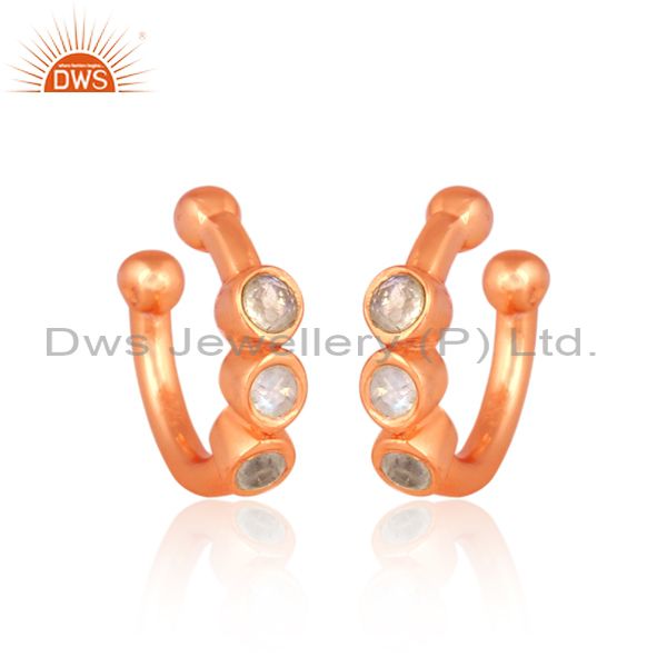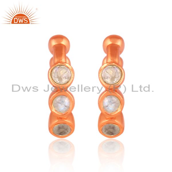 Round rainbow moon stone rose gold on silver earrings