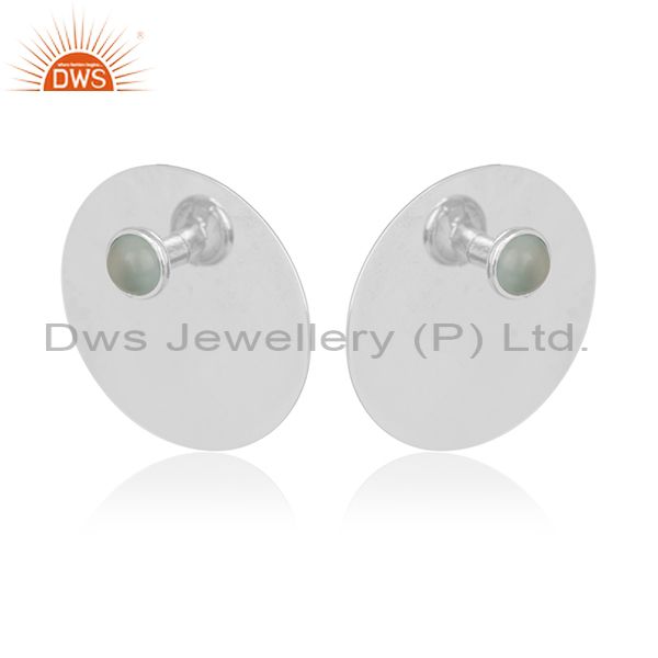 Round Sterling Plain Silver Aqua Gemstone Custom Earring Manufacturer