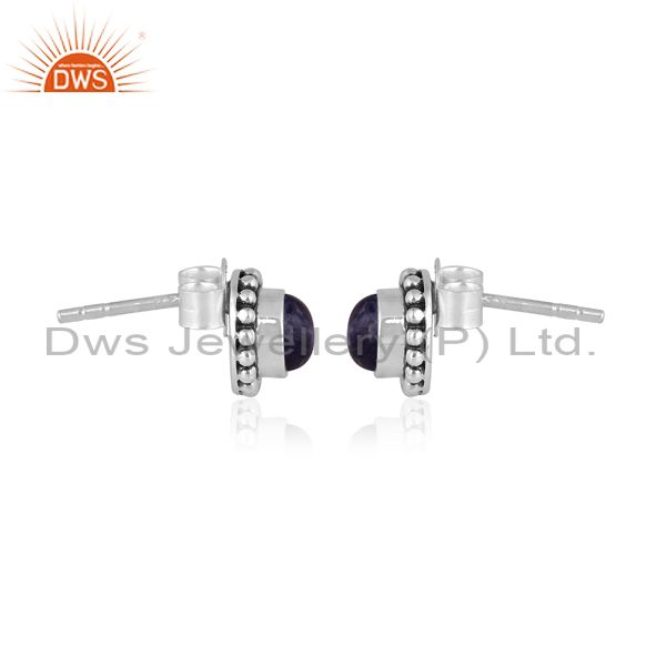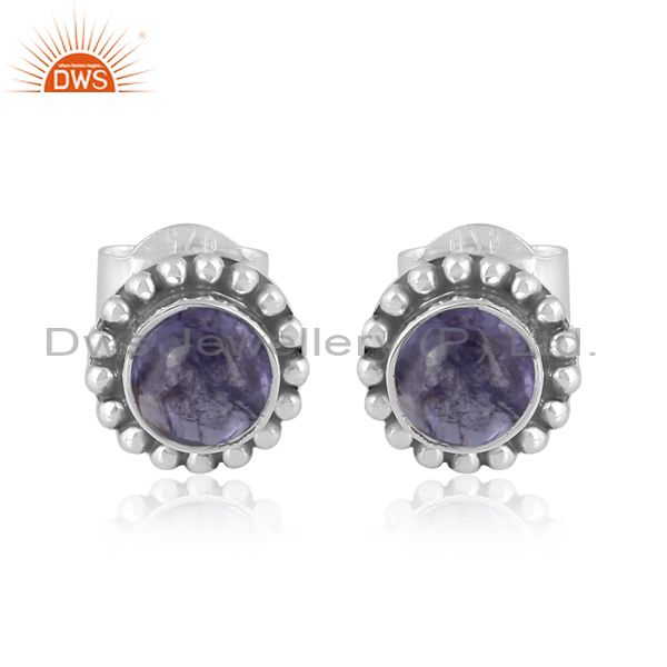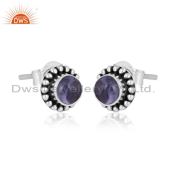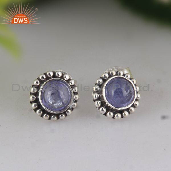 Round Tanzanite Set Oxidized 925 Silver Classic Earrings