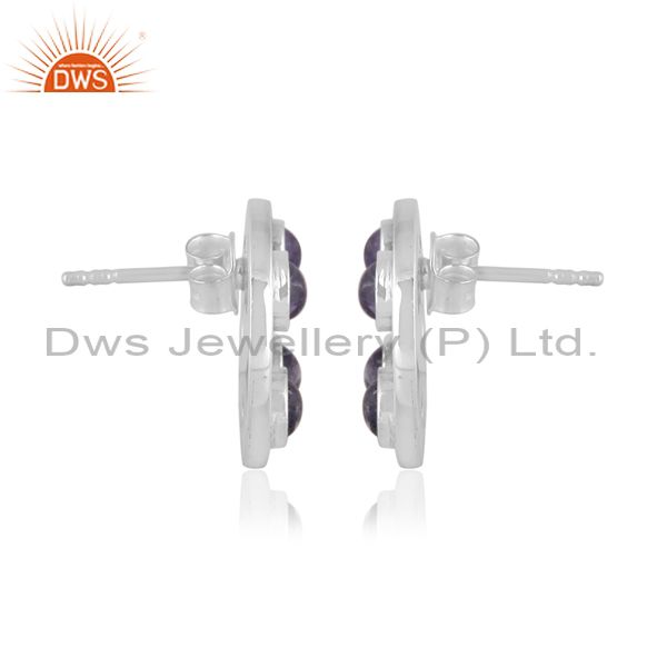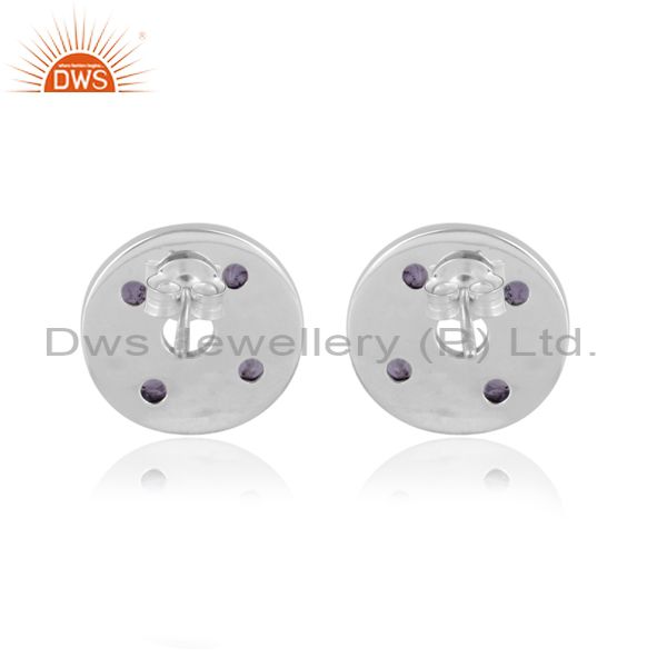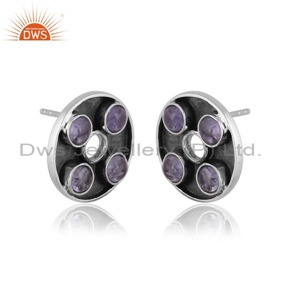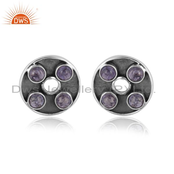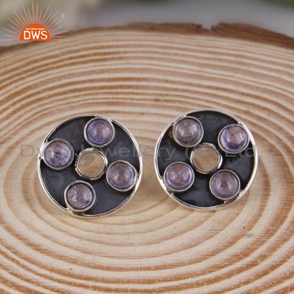 Round Tanzanite Set Oxidized Silver Classic Design Earrings