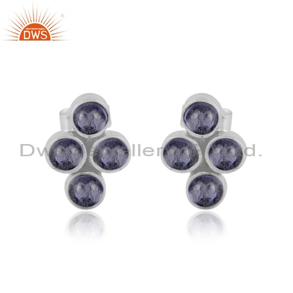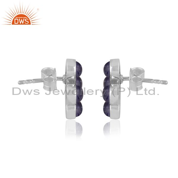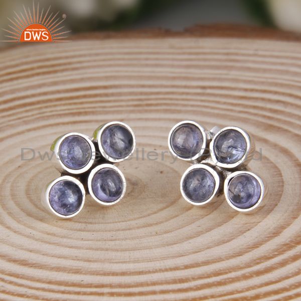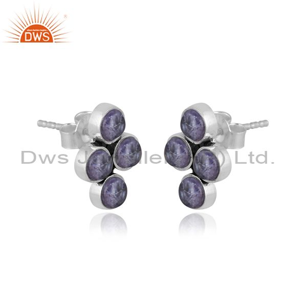 Round Tanzanite Set Oxidized Sterling Silver Design Earrings