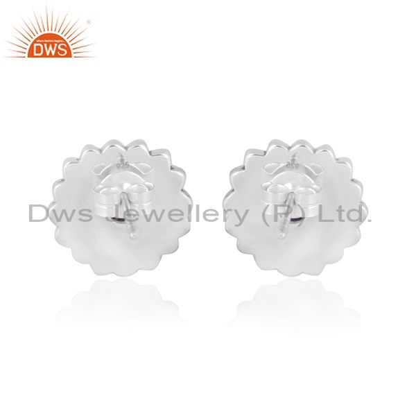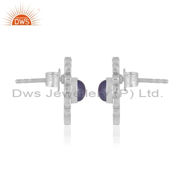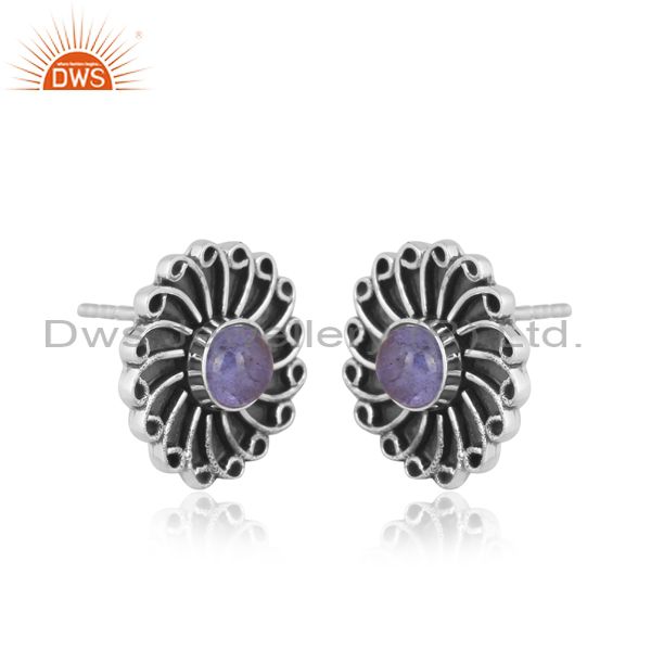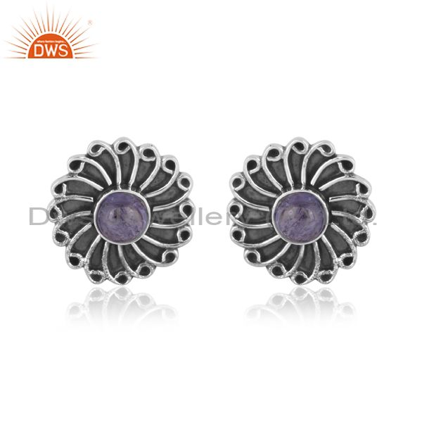 Round Tanzanite Set Oxidized Sterling Silver Floral Earrings