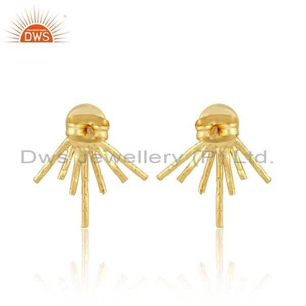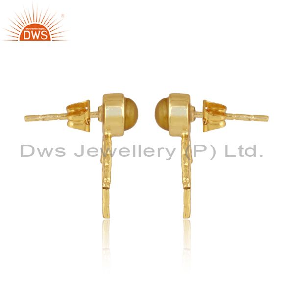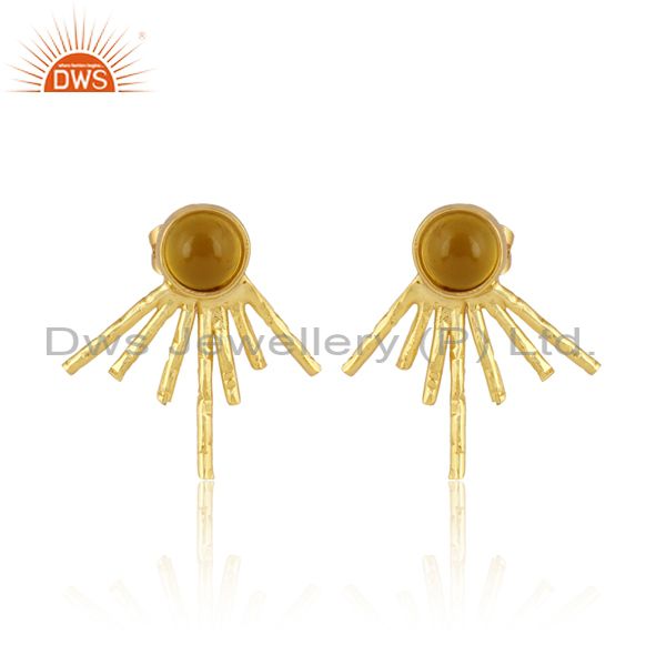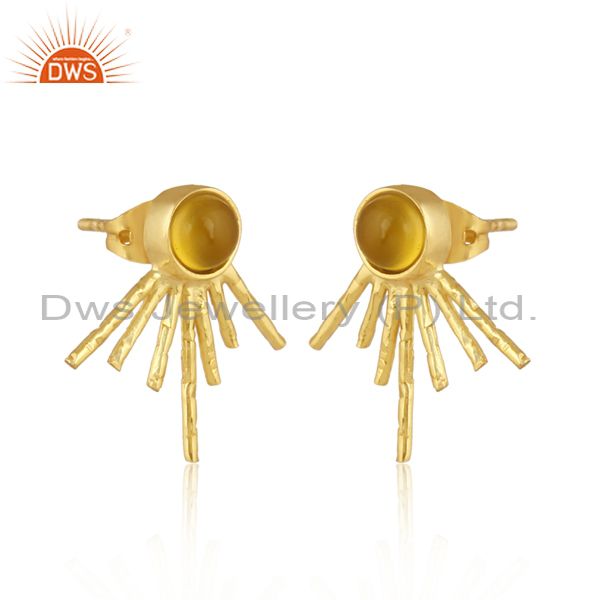 Round Yellow Chalcedony Set Brass Gold Statement Earrings