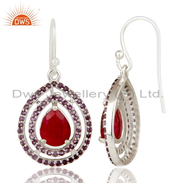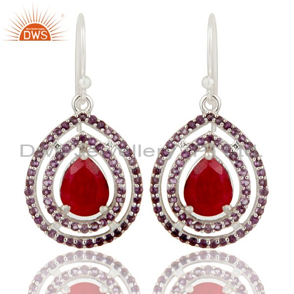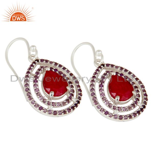 Ruby and Amethyst Gemstone Sterling Silver Dangle Earrings
