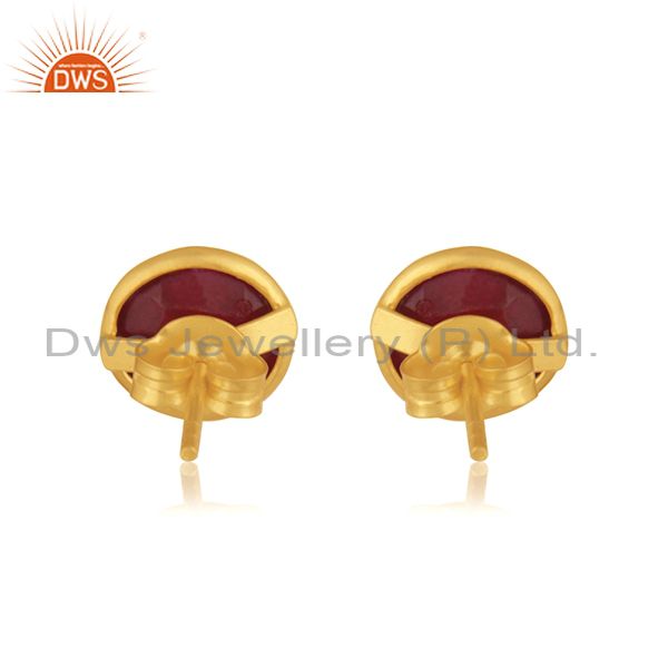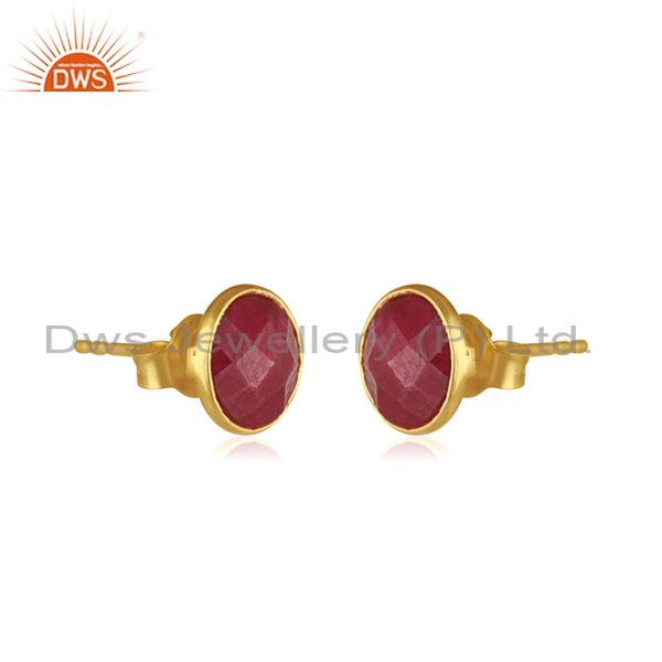 Ruby Corundum Gemstone Gold Plated 925 Silver Stud Earrings Manufacturer India