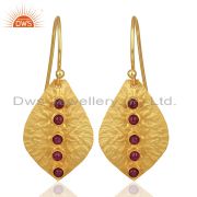 Ruby Dangle 14K Yellow Gold Plated 925 Sterling Silver Earrings Jewelry