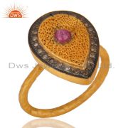 Ruby Gemstone Pave Diamond 925 Sterling Silver Stud Earring With Gold Plated