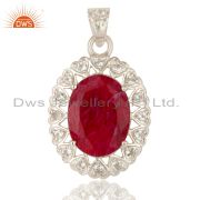 Ruby Red Corundum And White Topaz Sterling Silver Prong Set Dangle Earrings