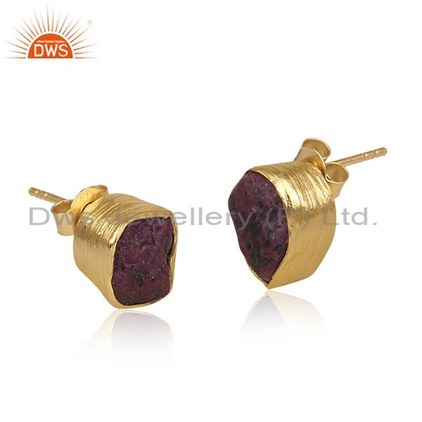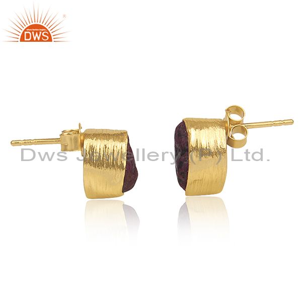 Ruby Set Gold On Sterling Silver Handmade Abstract Earrings