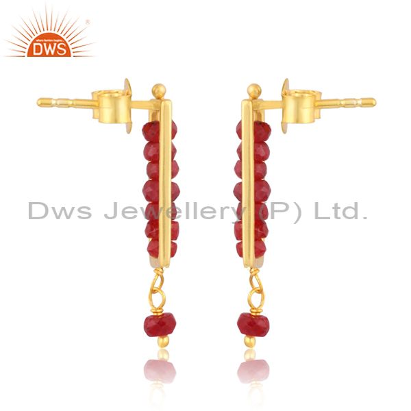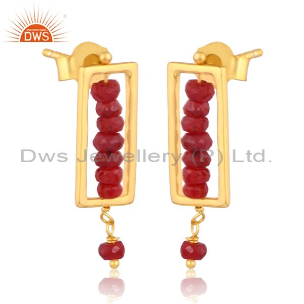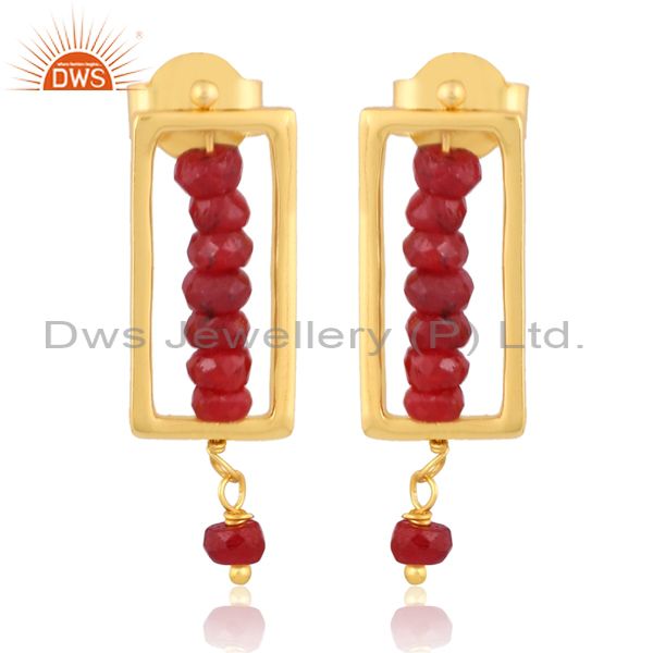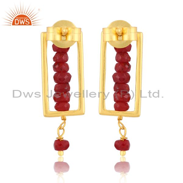 Ruby Set Gold On Sterling Silver Long Rectangular Earrings