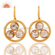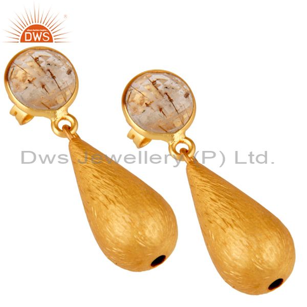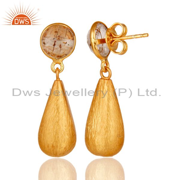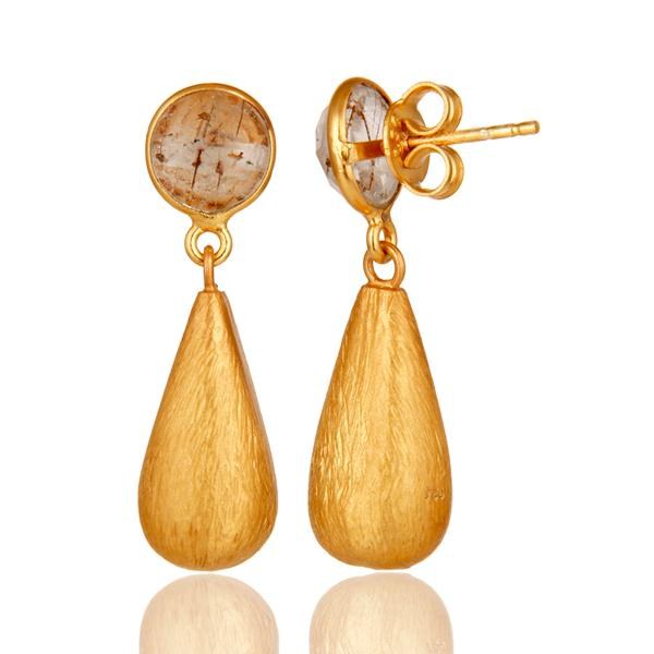 Rutilated Quartz 22K Yellow Gold Plated Sterling Silver Teardrop Earrings