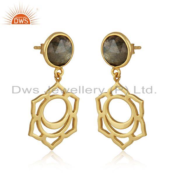 Sacral Chakra Earring In Yellow Gold On Silver With Labradorite
