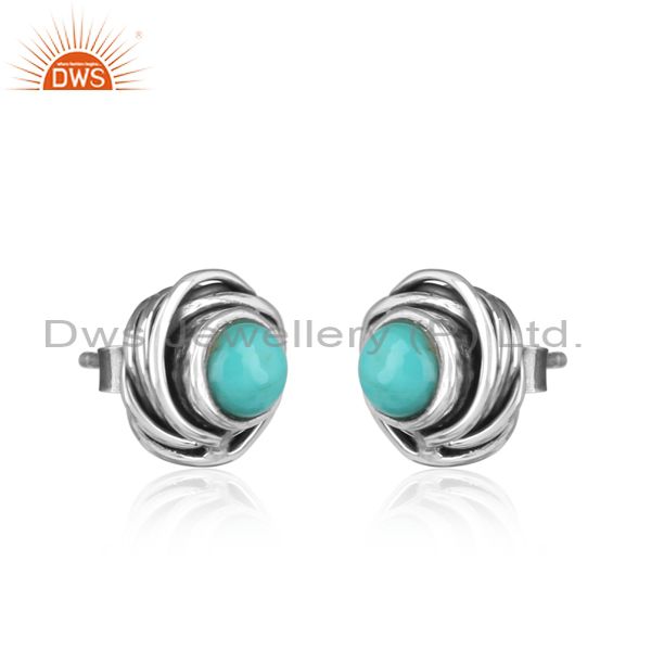 Semi-Precious Arizona Turquoise 925 Oxidized Silver Earrings