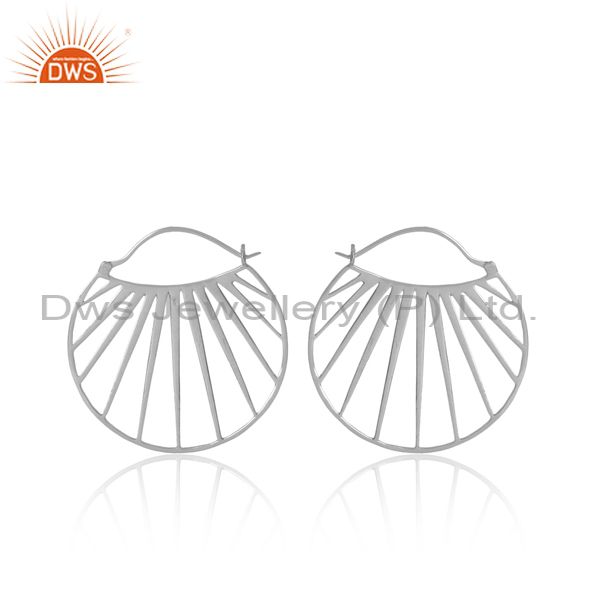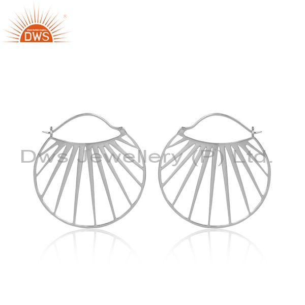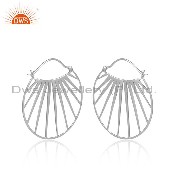Shell Patterned White Rhodium On Silver Round Hoop Earrings