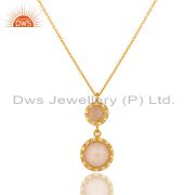 Shiny 18K Yellow Gold Plated Sterling Silver CZ And Rose Chalcedony Drop Earring