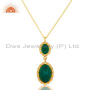 Shiny 18K Yellow Gold Plated Sterling Silver Green Onyx Drop Earrings With CZ