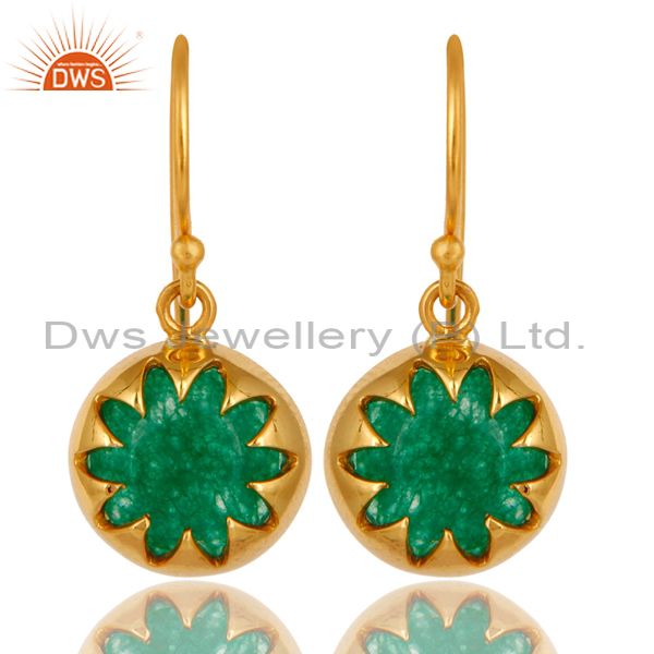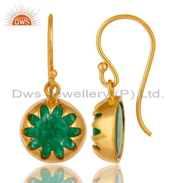 Shiny 18K Yellow Gold Plated Sterling Silver Natural Green Aventurine Earrings
