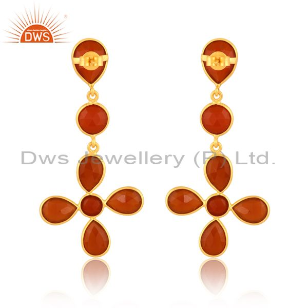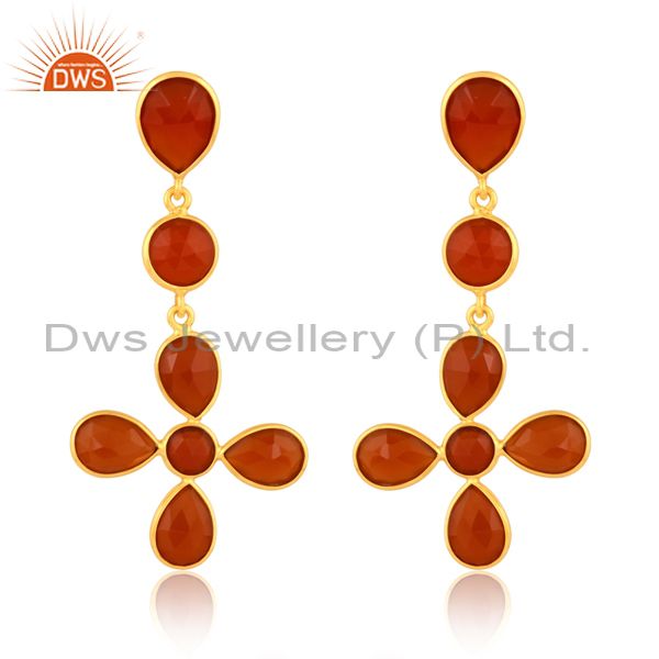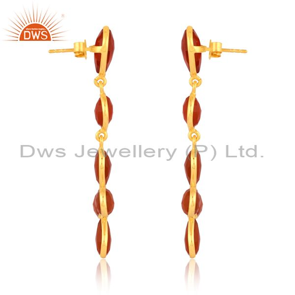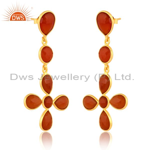 Silver Drop Earring With Red Onyx Round And Pear Cut Stone