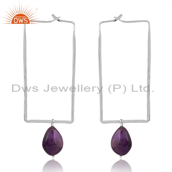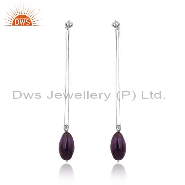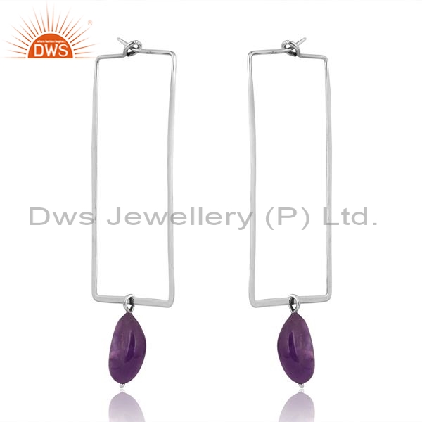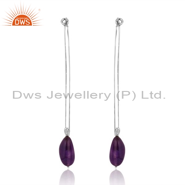 Silver Drop Earrings With Amethyst Tumble Unshape Stone