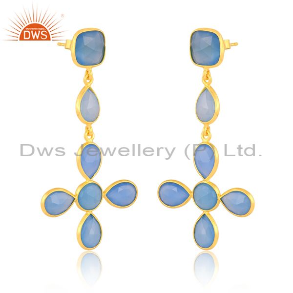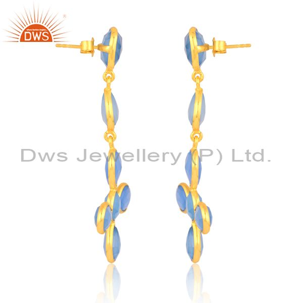 Silver Drops With Blue Chalcedony Pear Round Cabushion Cut