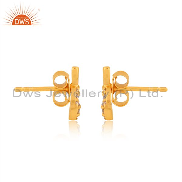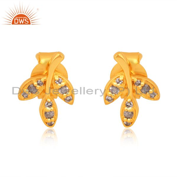 Silver Earring With Micron Plating And Diamond Cut Stone
