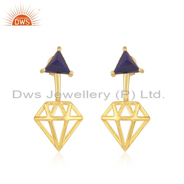 Silver earrings in gold finish with lapis lazuli