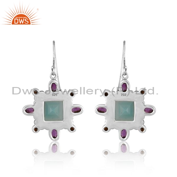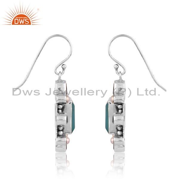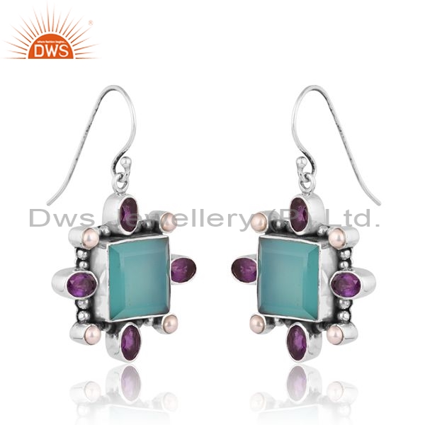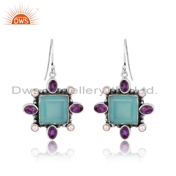 Silver Earrings With Aqua Chalcedony, Amethyst And Pearl