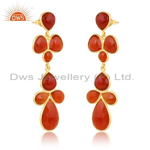 Silver Earrings With Red Onyx Round, Pear, Heart Stone