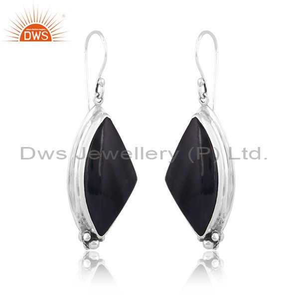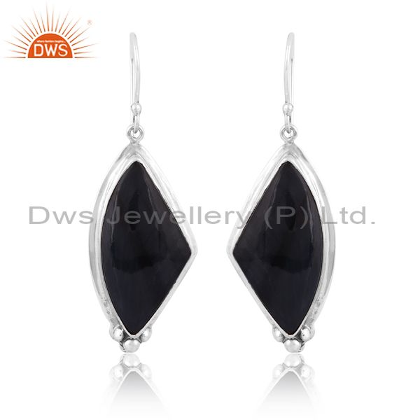 Silver Earrings With Tiger Eye Blue Cabochon Unshaped Stone