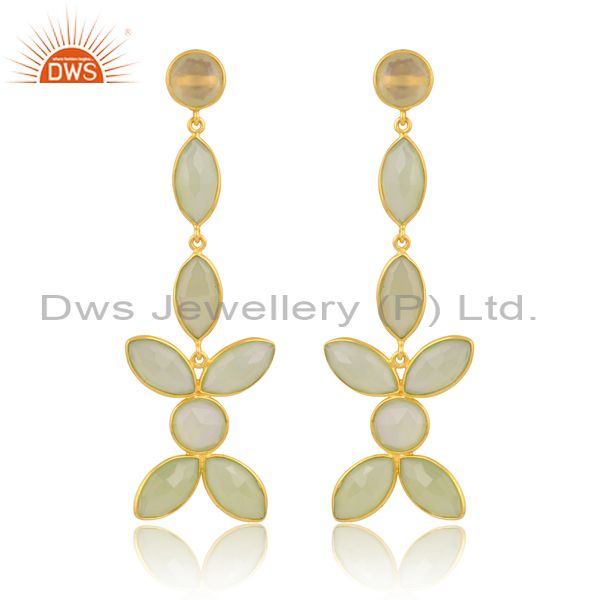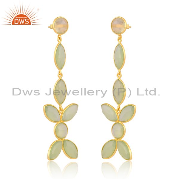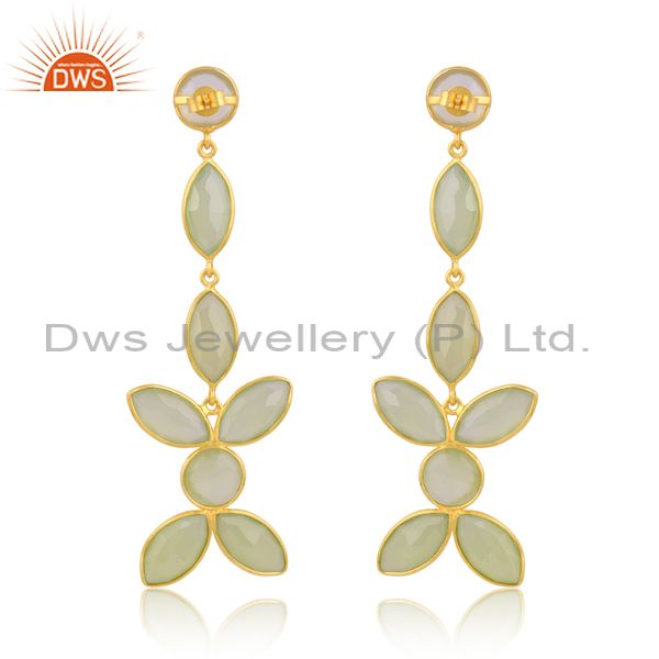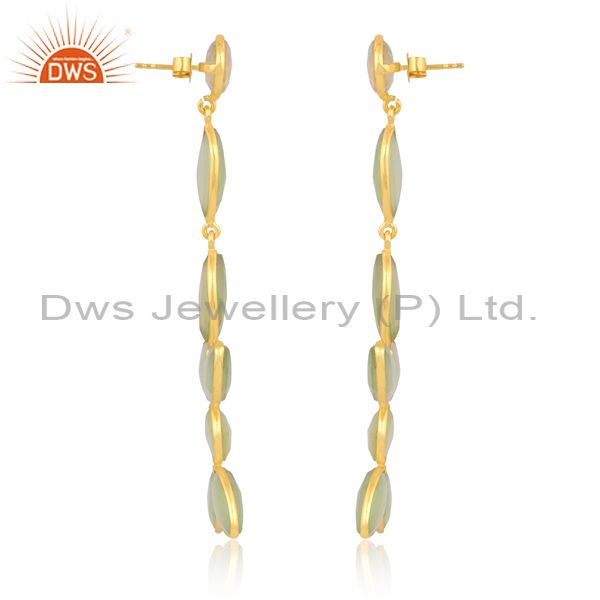 Silver Gold Earring With Prehnite Briolette Chalcedony Stone
