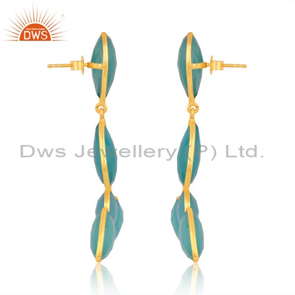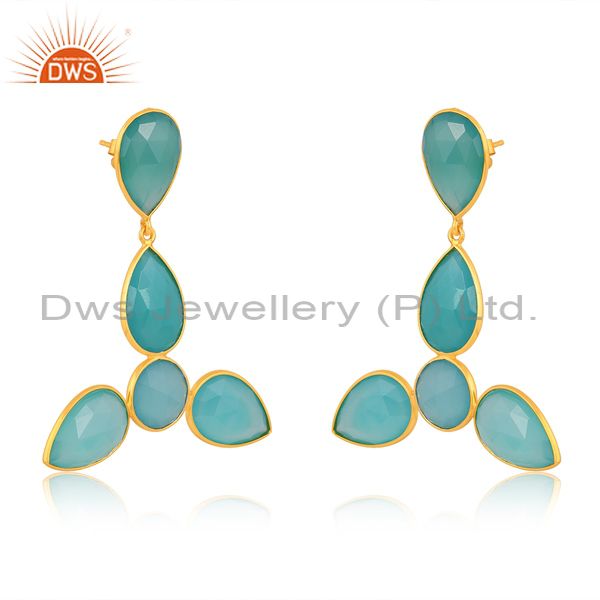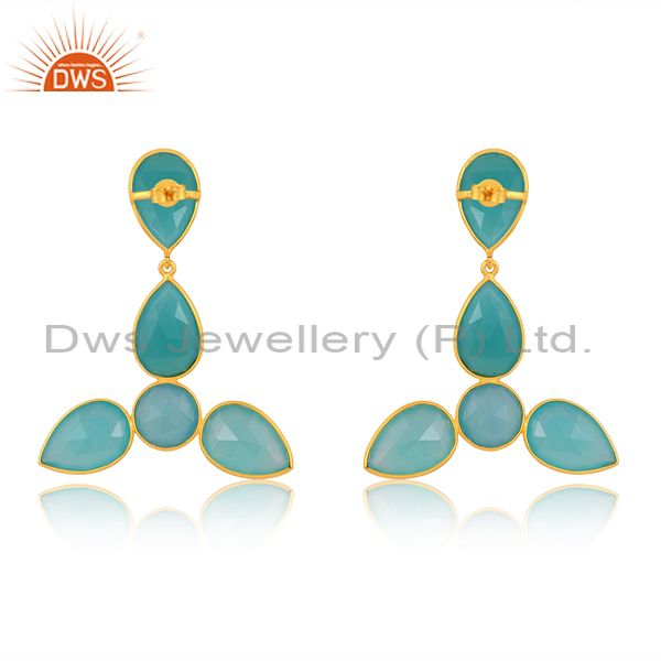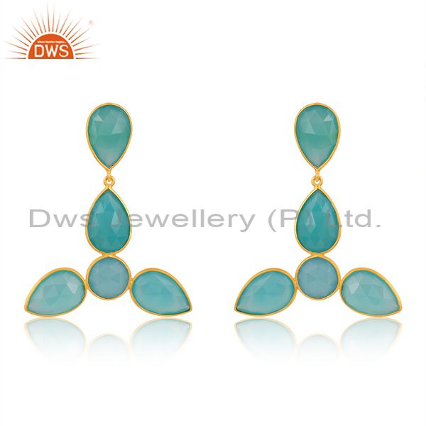 Silver Gold Earrings With Aqua Chalcedony Pear And Round Cut
