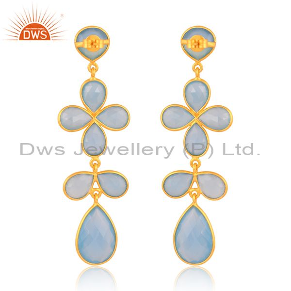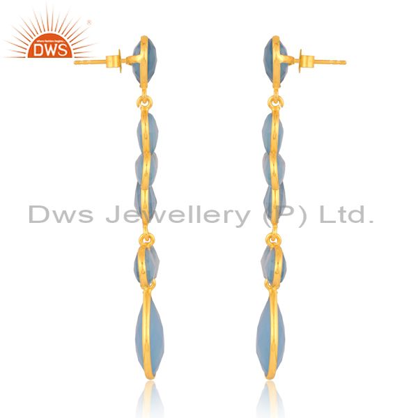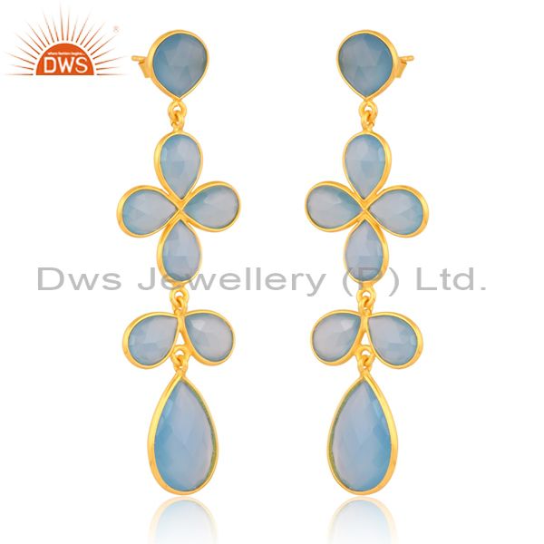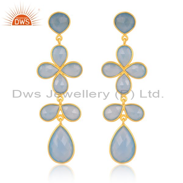 Silver Gold Earrings With Blue Chalcedony Pear And Heart Cut