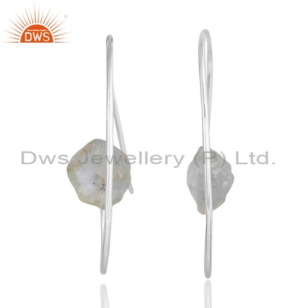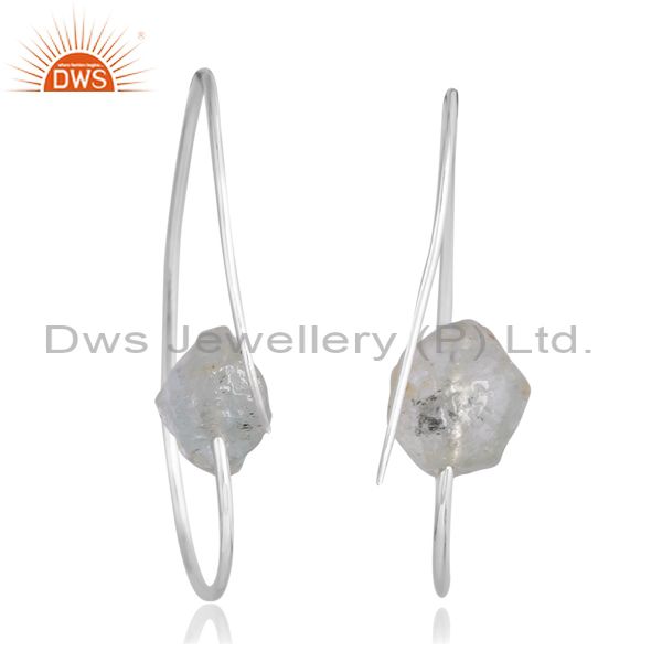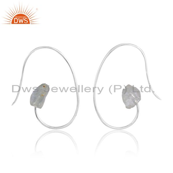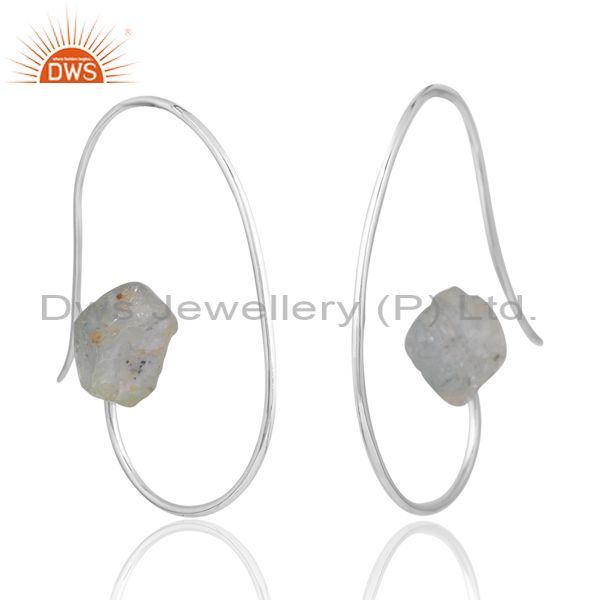 Silver Large Hoops For Young Girls With Aquamarine Stone