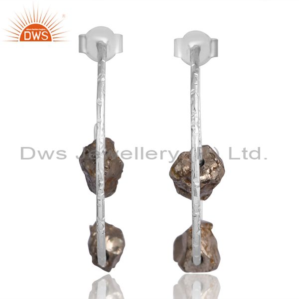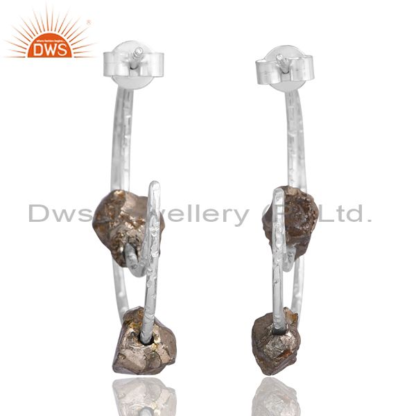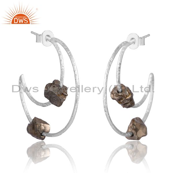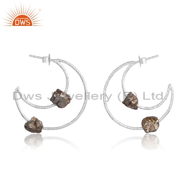 Silver Pita Wire Hoop For Women With Pyrite Rough Stone