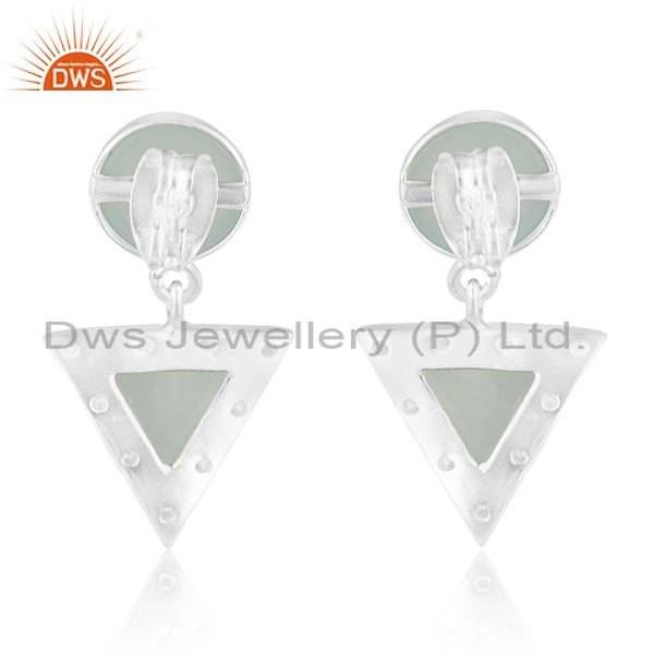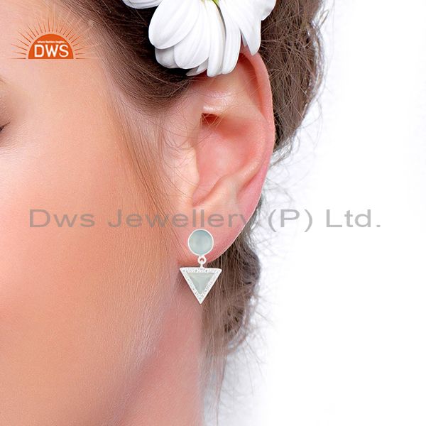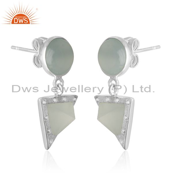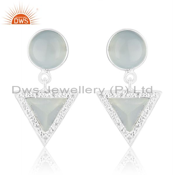 Silver Plated Brass Aqua Chalcedony and Cz Gemstone Earrings Manufacturer