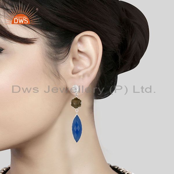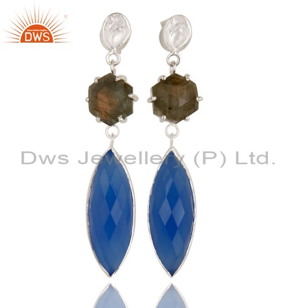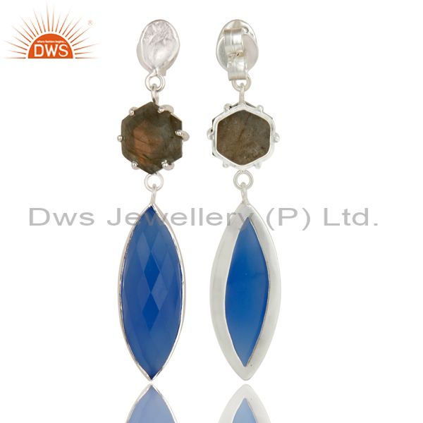Silver Plated Dyed Blue Chalcedony & Checkered Labradorite Earrings